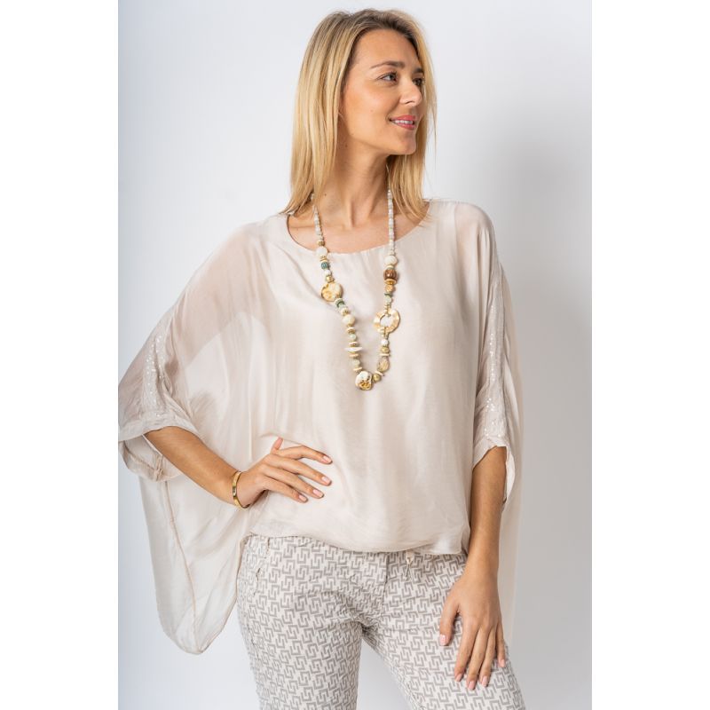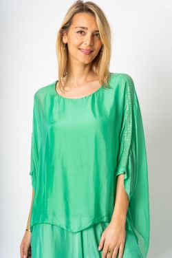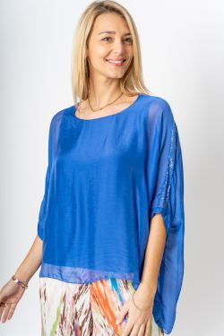 Silk Blouse w/ Sequin Sleeve