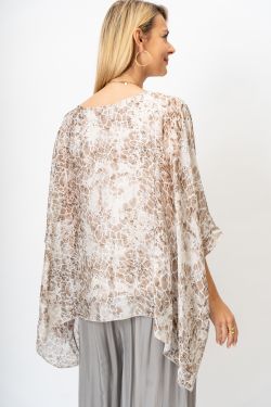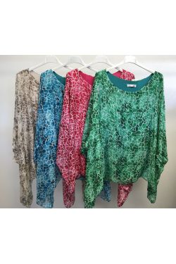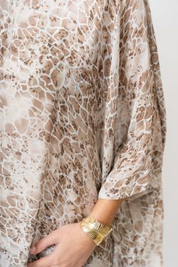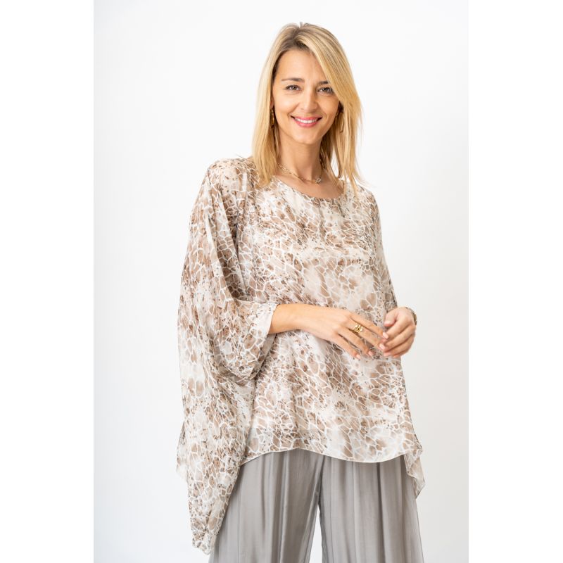Small Giraffe Print Silk Blouse. Round neckline, wide sleeve, lined, print on front and back.