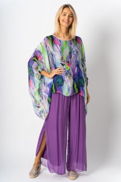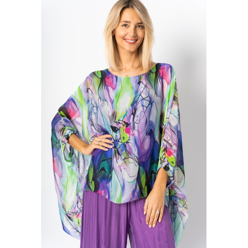 Flower water paint silk Blouse