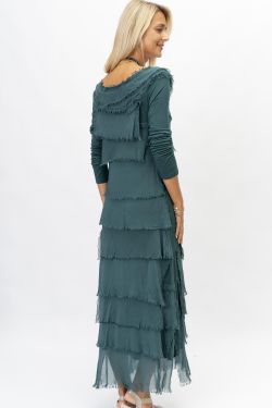 Long Sleeve Solid Ruffle Dress