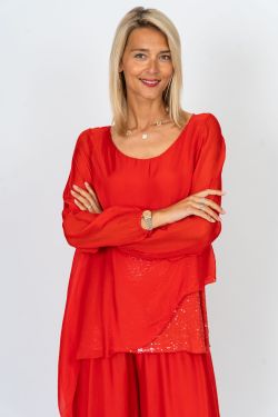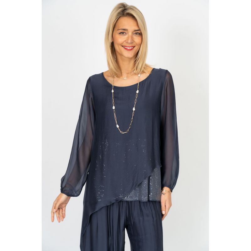 Silk Blouse with Sequins Details. Can be tie on side. Sequins bottom