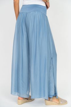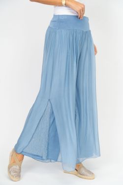 Silk Pants split on side (from the knee to the ankle). Elastic waistband.