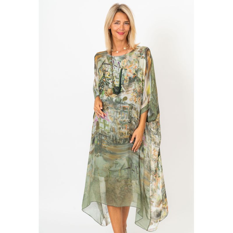Village Print Silk Dress
