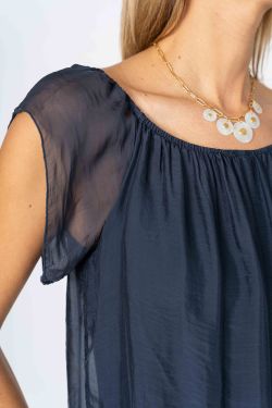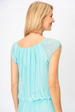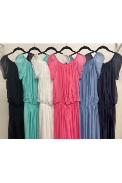 Silk Jumpsuit. Cap sleeve. Elastic waist. Fully lined.