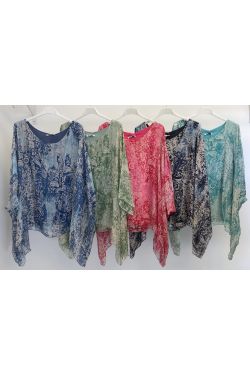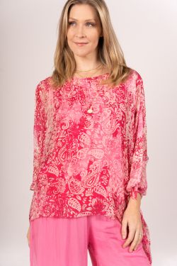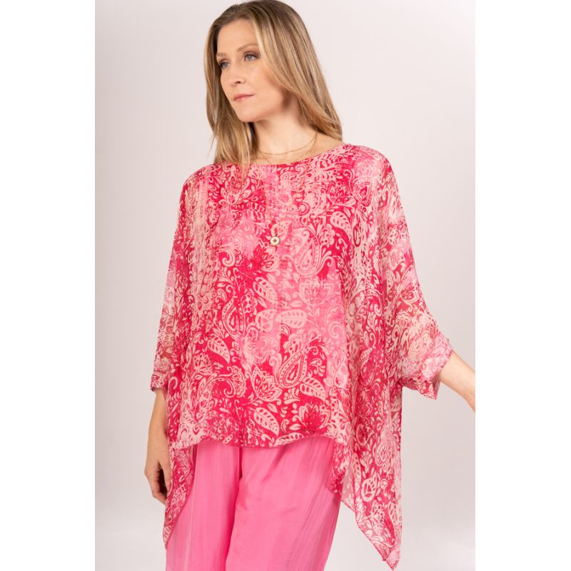 Paisley Flower Print Silk Blouse. Wide sleeve, fully lined, round neckline.