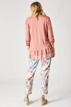 Medium size cardigan. Cotton with silk ruffle. Bottom up sleeves.