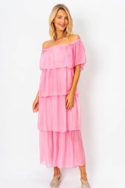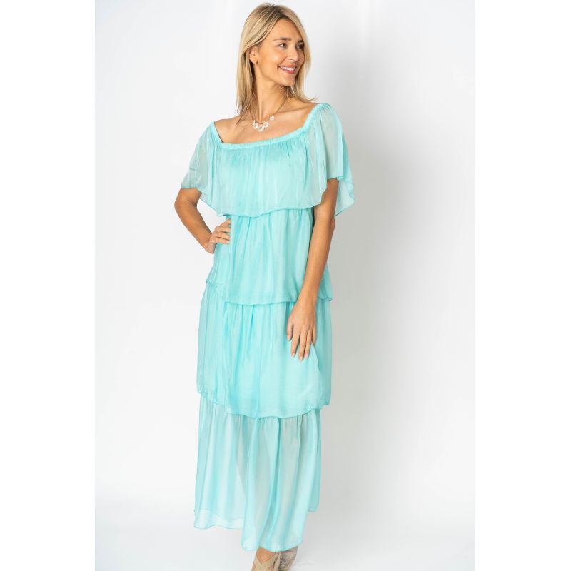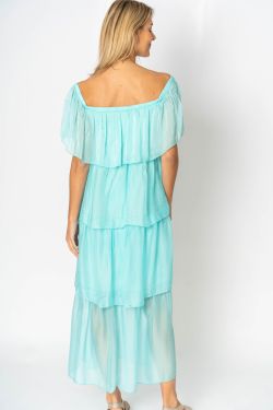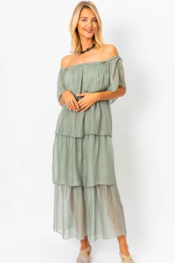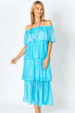 Off Shoulder Layered Dress. Can be worn off or on shoulder.stretch jersey bodice