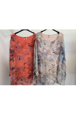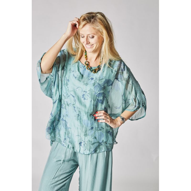 Flowers Printed silk Blouse. Full body lining. Sequins detail on sleeves.