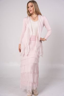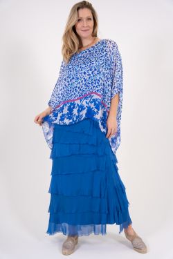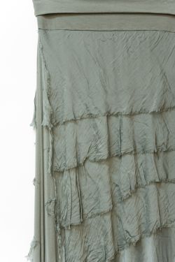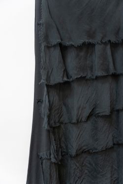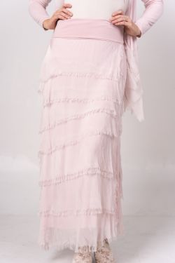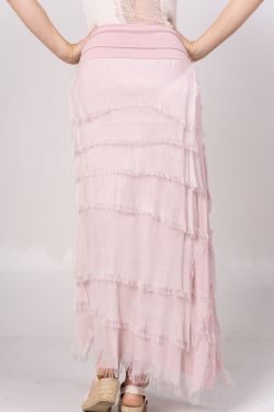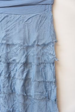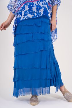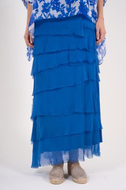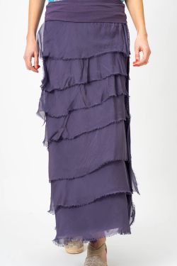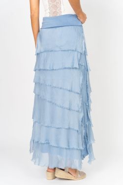 Silk Long Ruffle Skirt. Viscose and elastic fold over waistband, fully lined.