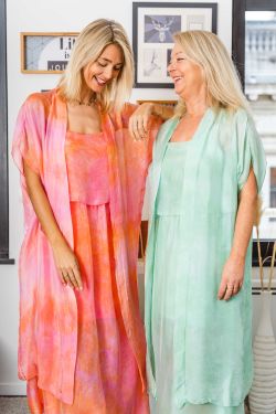T/D silk Cardigan. 3/4 sleeve and Length. Open closure